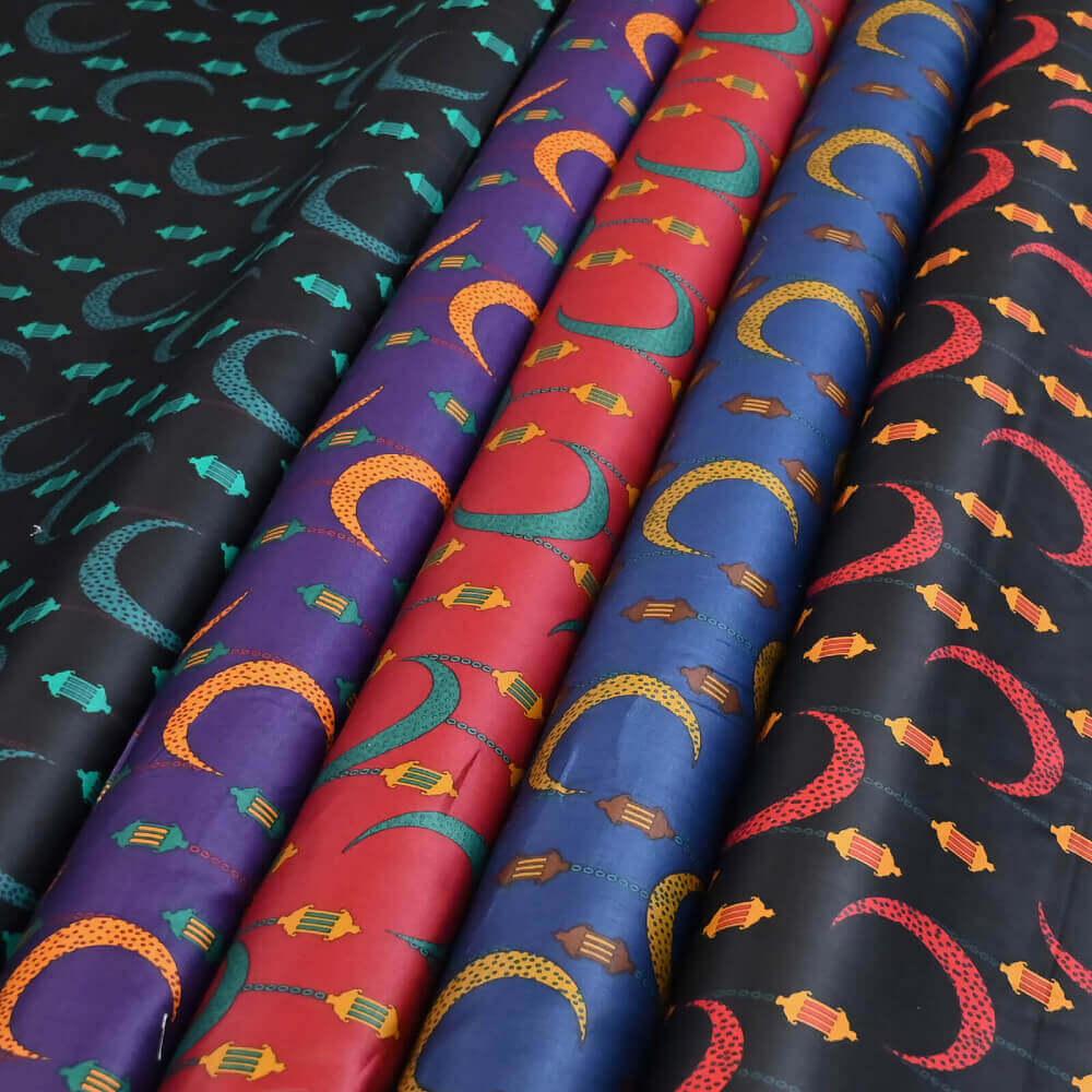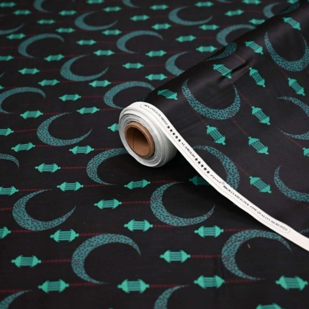العمودي جاب لك السوق نفسة الان احصلي على اقمشة قطن شهر رمضان خمس نجوم الأصلي تشكيلة جديدة وراقية قماش مرسومة على شكل هلال وفوانيس قطن ناعم وبارد ومريح للجسم يعتبر من افضل الاقمشة القطنية تركيبة القماش 100% قطن وزن خفيف مناسب للاجوا الحارة وتساهم في اطلالتك بمظهر السيدة الانيقة