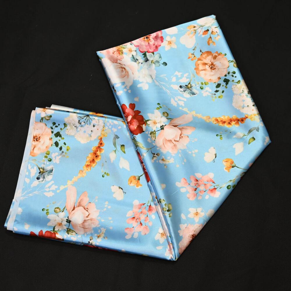 قماش حرير ديجتال, تميزي بالحرير الناعم والبارد, قماش مصنوع من انسجة بارة ومريحه حرير طبيعي 100% تركيبة الالوان جذابة وجميلة ولمعة خفيفة تعطيك انعكاس جميل وراقي.